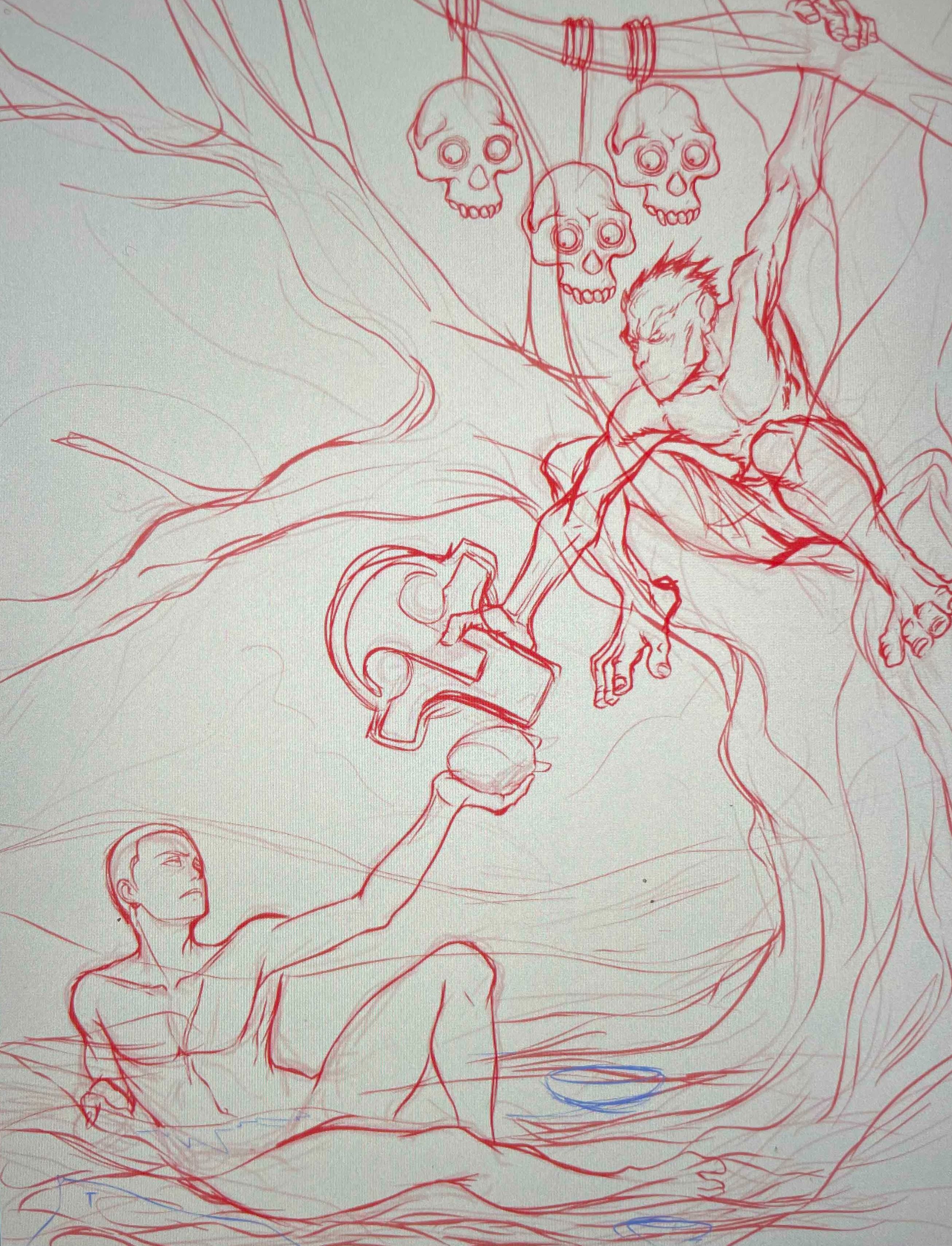 Once the discussions were finished we earnestly awaited for Phil to present us the rough sketch. In the past few week the most anticipated and nerve-wracking moment for us is this waiting period where are left to wonder what magic and madness follow.