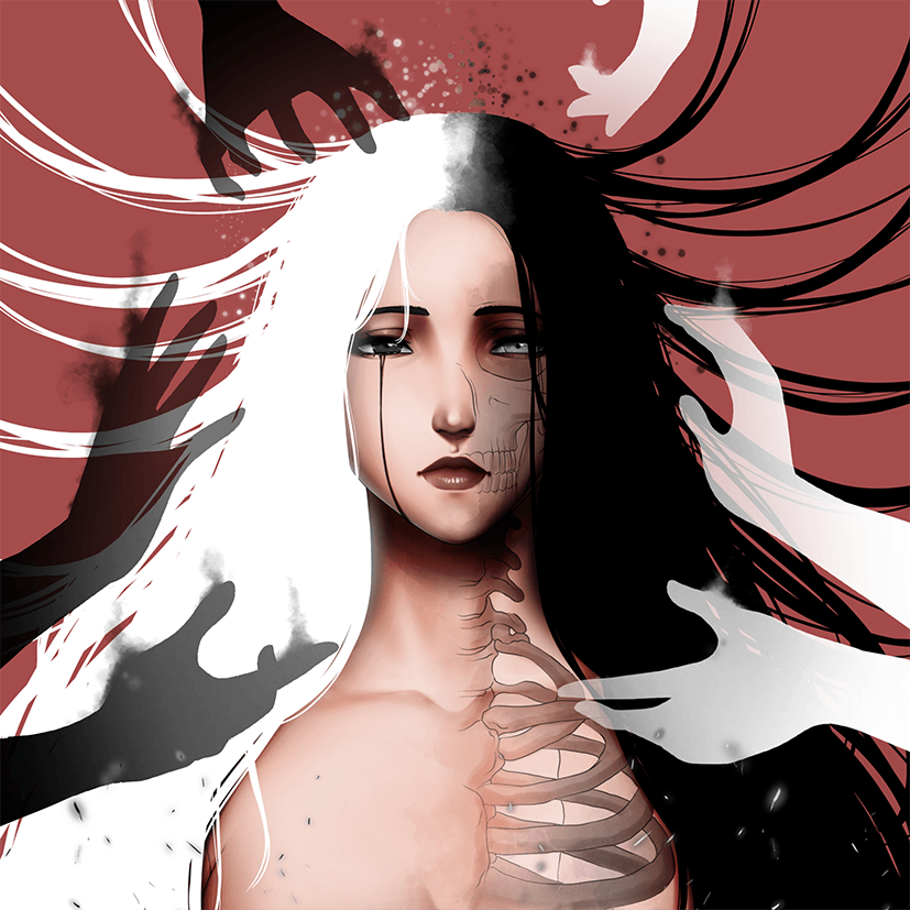 The second week of The Inevitable brings us Antipode by Unicode, which explores the duality of life and death. The piece depicts a female figure split in two, with one side flesh and the other skeletal, reflecting the idea of opposing forces.