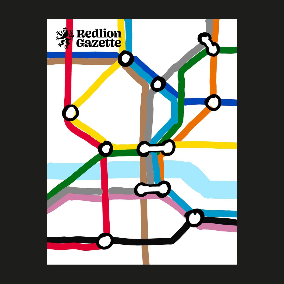 We started off thinking that we would depict the event with a typographic graphic poster. Something we haven’t really tried out for a Gazette before. Still, after a few iterations of different ideas we came up with the idea that we could create a vector map of the London Underground, which is iconic and historical, but of course with an NFT spin to it. What we first thought would be a few hours of work turned out to be tedious in its own way. We ran into some hurdles trying to create a map that resembles the Underground, but works and, also have “NFT LND” shown using the different lines.