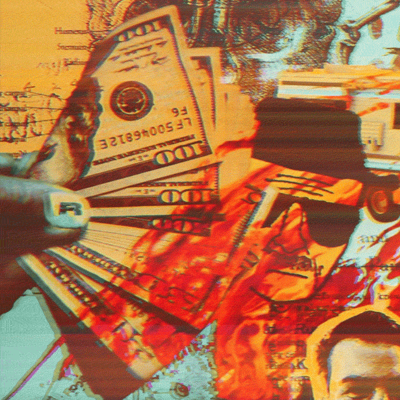 Here comes Jean-Michel Basquiat (đ) with his sketch behind him as a most controversial NFT. In my opinion, destroying physical non-fungible artwork for creating digital non-fungible token is simply barbaric. You'll also notice his famous crown scattered throughout the collage.