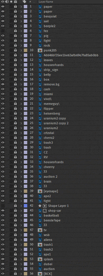 Production-wise it was mostly about searching for the right images, removing backgrounds, and combining them into a nice, comprehensive collage. There were 56 moving layers + 25 layers static in the background, all animated in After Effects.