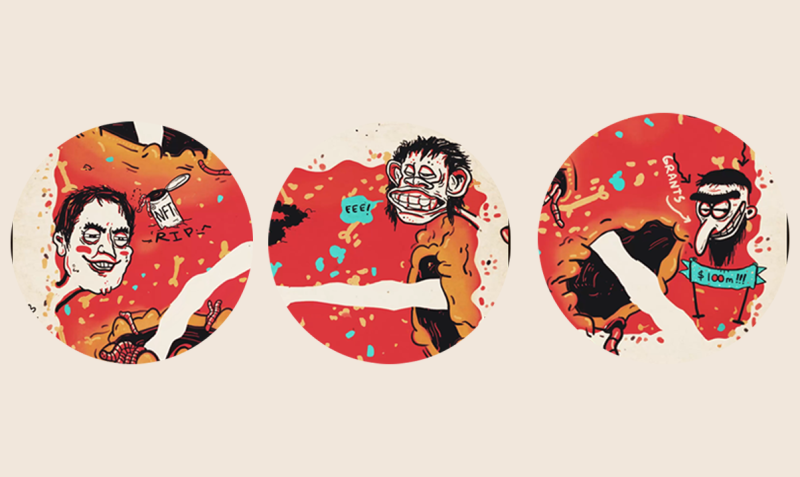 Meanwhile this was being animated we also snuck in some goofy animations for the other references of articles of Mark Cuban, Ape DAO, the sly GameStop representative (about the Immutable X grant and the drama following it), and few of the squiggly worms we have topped the cover with.Â