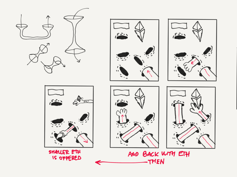 After the artwork was created the tricky part was to animate the sneaky hands that crawled up the different holes and robs the ETH. Dudly had this work out after scheming a clever solution in the limited amount of time we were working with. Ta-da! We had a super-smooth animation of the long limbs.
